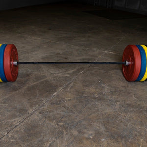 This bar features a four needle bearing pivot, hardened chrome sleeves and a black zinc shaft. The OB86EXT is built with a 28mm grip diameter, a hardy 1,500 lb. weight capacity and a tensile strength of 205,000 PSI. Aesthetically, the bar features a sleek embossed logo cap displaying weight information and more. Ideal for competition training, home gyms, garage gyms and group fitness facilities.