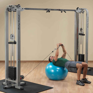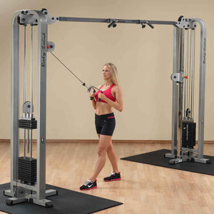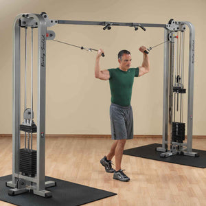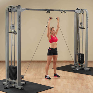 The Body Solid Pro Clubline Cable Crossover is the pinnacle of versatility in strength training. Offering an unlimited number of exercises, cable crossover machines are a staple to any gym, health club, fitness center, or workout facility. The SCC1200G is designed and built to satisfy any fitness enthusiast. Pulleys swivel 180 degrees allowing accurate resistance throughout any exercise movement. The pulleys also adjust to 12 different horizontal positions ensuring a proper starting point for almost any exercise. Premium commercial components ensure dependability and reliability even in heavy use, high-traffic gyms and clubs. Stable, solid and smooth, the Body Solid Proclubline Cable Crossover machine is an essential piece for any workout facility.