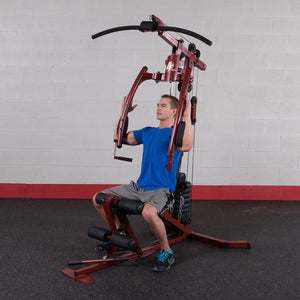 The Best Fitness Sportsman Gym 20 is a complete gym in one compact, affordable machine. The padded pressing arms follow the natural arc of a free weight bench press and pectoral dumbbell fly. Features 2200 lb. test nylon coated aircraft quality cables and fiberglass pulleys with ball bearing movement on solid axle rotation. Includes high pulley with wide grip lat bar and low pulley with narrow grip low row bar. This home gym features a no cable change design!