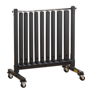 Designed for easy storage of your Body Solid vinyl or neoprene dumbbells. Vertical storage allows over 100 vinyl or neoprene dumbbells , from 1-15 pounds, stored in a compact space with easy access. Heavy gauge steel tubing provides a solid and stable storage solution. Heavy-duty kasters for easy transportation. The perfect companion for your Body Solid Tools Vinyl or Neoprene Dumbells, the GDR500 is compact, stable and affordable. GDR500 Dumbell Rack - Dimensions: 42.5"W x 26.5"L x 46"H.