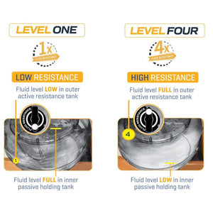 Providing 15% greater resistance than standard FDF horizontal models, state of the art Fluid Resistance Technology ensures no dead spots throughout stroke entirety for a vigorous and consistent cardio session. Manually adjust your Fluid Force level at the turn of a tactile and audible selector dial, assuring accurate and even level selection for a more consistent workout.