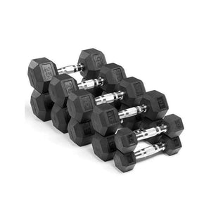 LEAD TIME: 5-50 lb Sets are in stock, there is currently an estimated 6 - 8 week lead time on other Rubber Hex Dumbbell Sets.