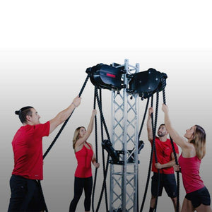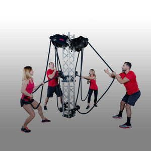 In this modular design system, the X8 Tower allows for installation of up to four X8 Rope Training units per tower. Its compact design form makes it very easy to fit in a small footprint area and it makes for a perfect group training tool. The X8 Tower allows for multi-direction rope workouts through the use of auxiliary pulleys.
