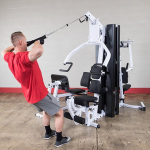 The Body-Solid EXM3000LS Multi-Function Gym System is perfectly suited for home or light commercial settings. You can't go wrong at your school, personal training studio, apartment fitness room or other small fitness facility with the EXM3000LS.