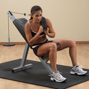 Perform sit-ups and crunches easily, effectively, and safely with full range abdominal resistance. Achieve a 6-pack and toned, tight obliques in less than half the time of other systems Curved back is specially designed to place you in an automatic pre-stretch position. Full-range motion adjusts from 30 degrees back of center to 30 degrees forward of center for the ultimate in comfort and efficiency. Back pad is infinitely adjustable for a customized workout that is appropriate and safe, no matter your size. Perform tricep extensions with ease in addition to abdominal workouts. For smooth operation and freedom of movement, the ball bearing pulley is both extra-wide and sealed. Lightweight and easily moved.