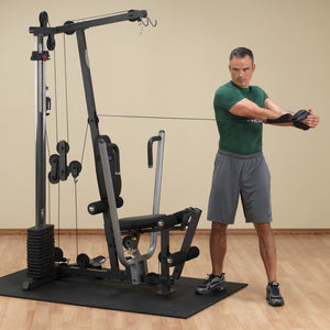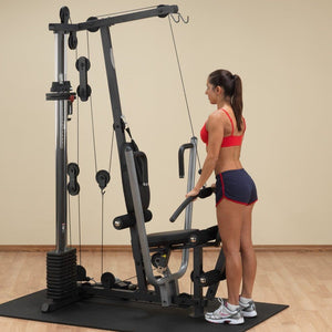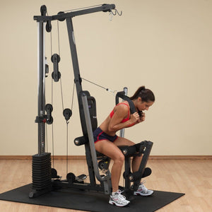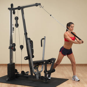 The Body-Solid G1S packs a lot of power, strength and durability into the smallest footprint available. Centered on a 160 lb. selectorized weight stack, this home gym allows over 40 toning, trimming and strength training exercises. From the multi-grip press arm to the contoured, adjustable seat pad, the G1S gives you more for your money than any other home gym on the market. Body-Solid G series gyms use the highest manufacturing standards and the finest quality pulleys, cables, and upholstery. The entire gym is backed by the best warranty in the industry, the Body-Solid In-Home Lifetime Warranty that covers everything. Forever. Period.