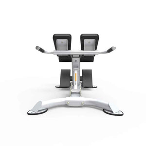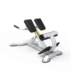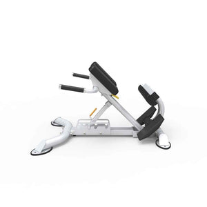 The CF2104 Adjustable Hyper Extension Roman Chair has 5 adjustable angles to target different areas in your lower back/glutes and hamstrings. It is built to withstand the rigors of a high-traffic workout facility while also maintaining a small enough footprint for smaller studios or homes. A four-point base eliminates any rocking that can occur during workouts while transport wheels and handle make moving the bench a breeze. Foam rollers also ensure your legs stay steady throughout the exercises, allowing for better development of the intended muscles. Target key muscle groups – lower back, hamstrings, gluteal/hips, hips/legs/back