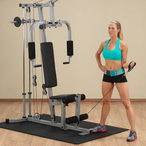 The Powerline PHG1000X Home Gym is designed to be versatile, durable, dependable and affordable. A standout feature on this machine is the patented press arm system that functions as a chest press station and replicates the pectoral dumbbell fly. Perform numerous high pulley, low pulley and leg extension/ leg curl exercises in any room of your home or office with this home gym. The compact design of the PHG1000X Home Gym fits anywhere.