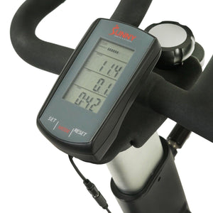 Sunny Health & Fitness’ most advanced performance monitor tracks: speed, Avg Speed, Max Speed, Cadence (RPM), Avg Cadence, Max Cadence, Distance, Target Distance, Time, Calories, Race, Target Time and Pulse.