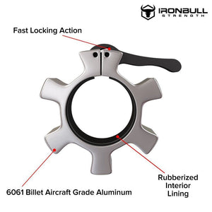 QUICK INSTALL – Our easy-to-use one-click lock design can be installed in seconds with a single finger for easy and fast install/removal. The powered snap-latch jaw is designed to lock on any barbell for maximum grip and safety.